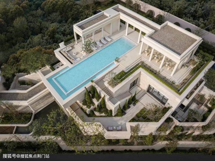 当青翠的山色映照在门前的镜面水池里,当莫奈睡莲画作中的那座桥浮现在大堂的环幕会客厅里,当街上的车水马龙隐现在沿街柱廊里,当这样一座「雅典卫城」矗立在街边,你能感受到绿城又把他们的「庐系」低密产品线推到了一个新高度。