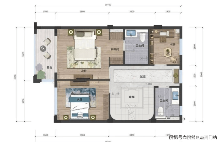 三层 尊崇主人层● 全功能主人层设计,10.7米大开间豪华套房布局,独享尊贵● 东西南3大环景露台,将大幕院景、阳光星辰尽收眼底,一境天地宽