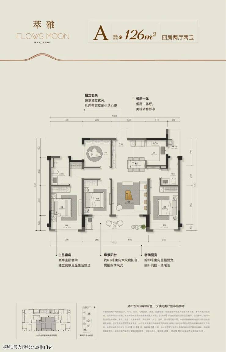 产品端,项目规划全是清一色的品质改善户型,仅272户,起步户型建面约126方,其中有一幢是169方,剩下大部分建面约126方/131方/139方的四房,建面约126/131方是两梯三户,建面约139/169方是类一梯一户。从翘楚比邻到品位共识,改善圈层更加纯粹了。