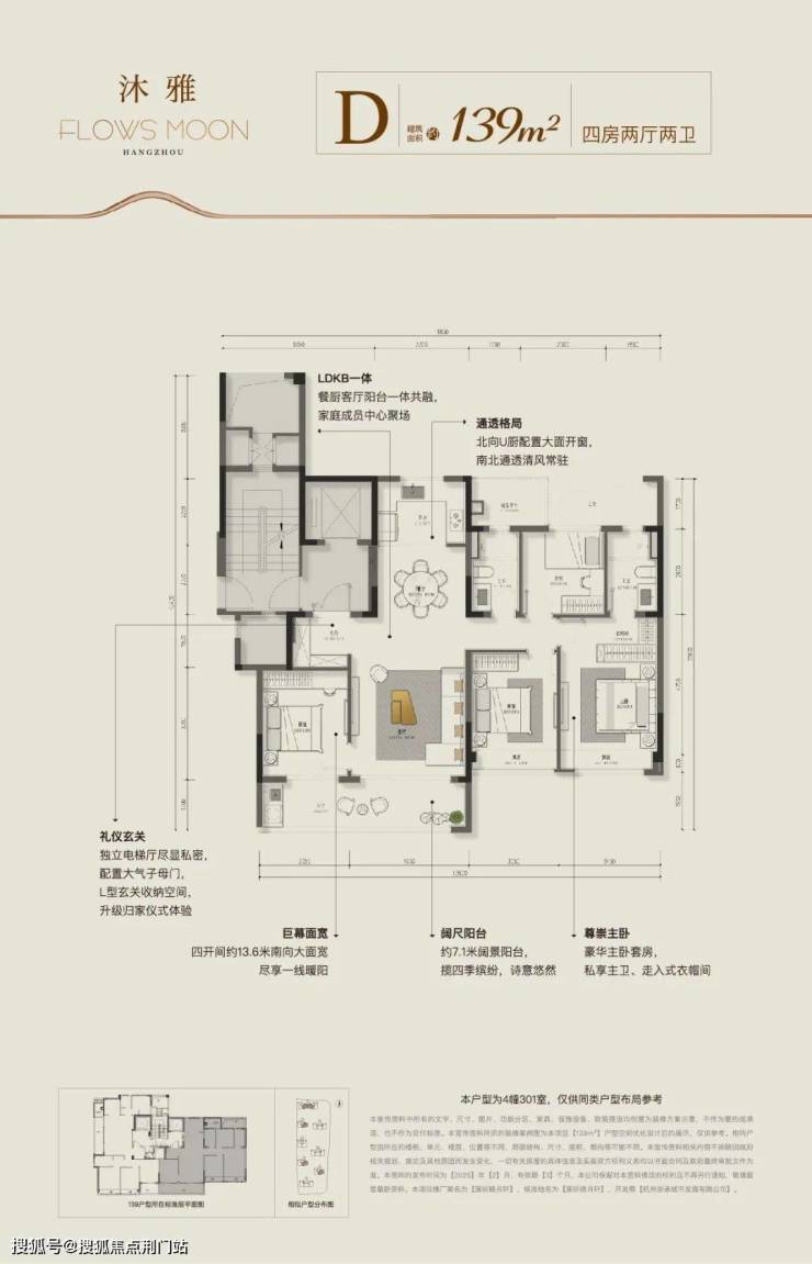 还有一款建筑面积约139方户型,同样可圈可点。