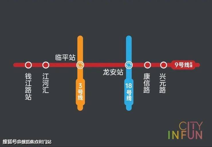 项目横跨地铁9号线兴元路站(在建)、康信路站(在建)两大站点,以轨道打破壁垒,一条地铁直达钱江新城、城东新城、滨江、西湖等高能区域,更高效的日常通勤外,还能享受到一脉市心的生活配套。