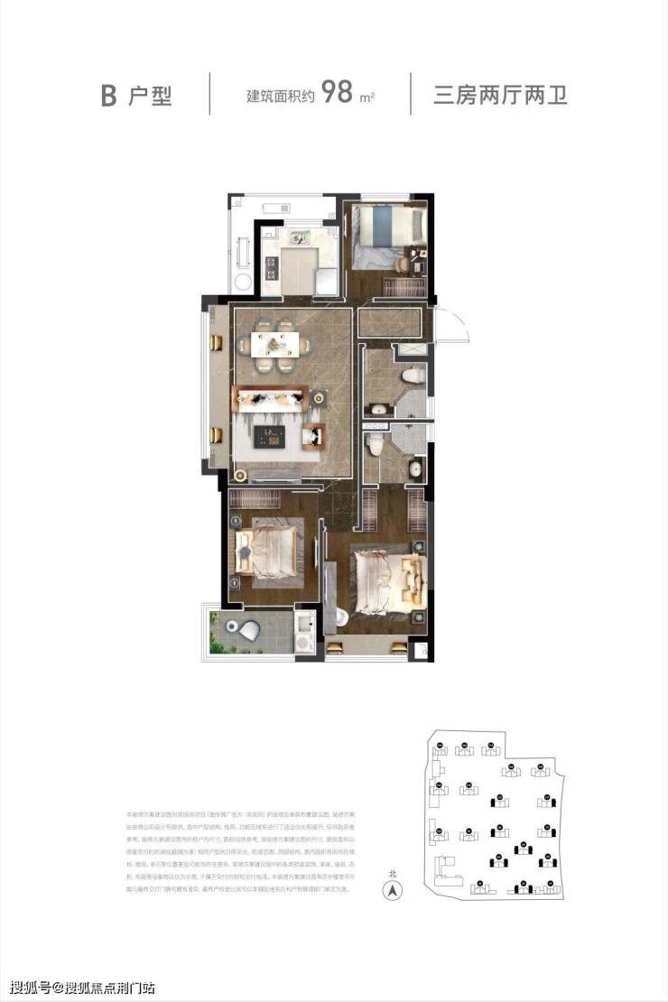 滨旭府总建面约23.5万㎡,由9幢高层(27层)+8幢小高层(18层)+1幢公租房(19号楼)+1幢自持(1号楼)及一所幼儿园组成。小高层主力户型为约89㎡中间套,约98㎡边套,有少量约110㎡边套;高层主力户型为约96㎡中间套,约99㎡边套