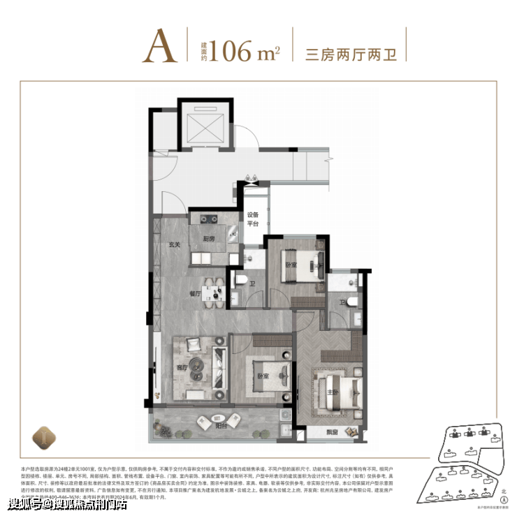 最后再来看看建发·云城之上的入门级户型,建面约106㎡三房。