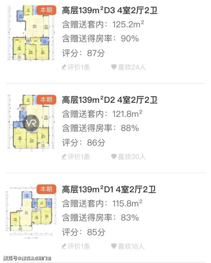 【梯户比】1梯2户、2梯2户、2梯3户、2梯4户