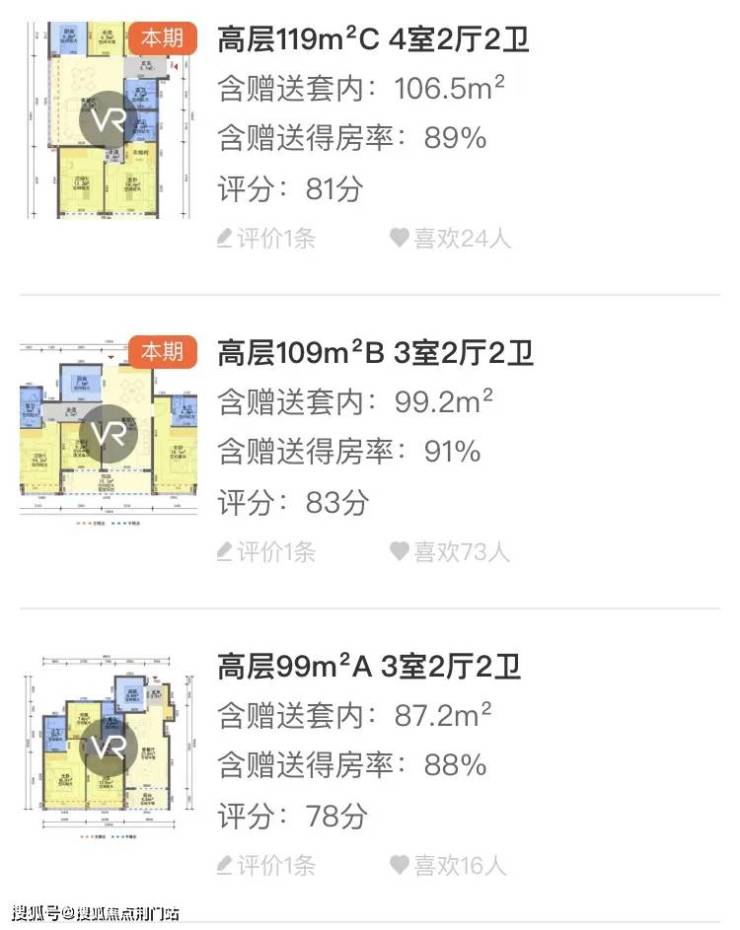 【机构实测】实测得房率,约83-91%,含赠送,如下图所示