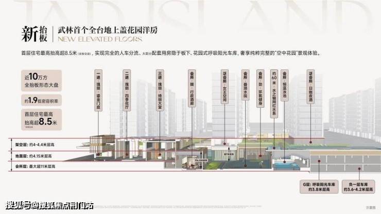 项目的领先性还体现在利用建筑新规创新设计「板块首个全台地上盖花园洋房」,整个小区通过约4.15米高的抬升,把“不利因素”隐藏起来,社区实现了彻底的人车分流。即便是洋房,2楼也相当于以往楼盘3-4楼高度,带来的是更优越的采光、通风,以及观景视野。