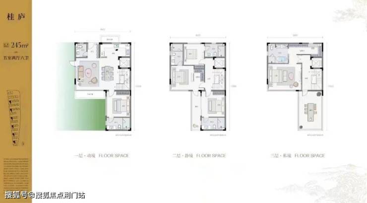 建面约245方的江山合院,整体5室2厅6卫。L型围合出私密独享内庭院;南向超大面宽更是超过了17米。为了追求即时采光面和开阔的观景视野,设计团队落地打造了270度环幕全景窗设计,自此在室内便可将一园四季美景尽收眼底。