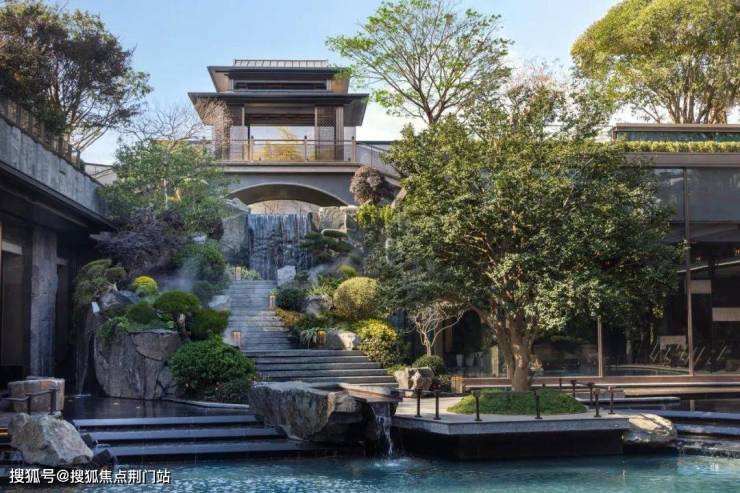 写仿西湖十景,取意郭庄形制,引湖入园、循序渐进,复现九溪烟树况味;景观中轴、风雨连廊、花园景致等将建筑与园林相融一起,依循自然缓坡地势,营造意韵悠扬的禅境园林,呈现小中见大、园中有园、景中有景、曲径通幽之境,将西湖的精致山水写仿入园,于方寸之间纳藏万千气象。