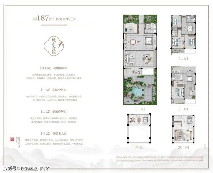 深谙尊贵人居之道,精研建筑面积约187—195㎡城市合院,敬献名门,约5.6米高阔绰地下室空间,开阖之间尽显世家门第之风,重新定义人生大境美好。