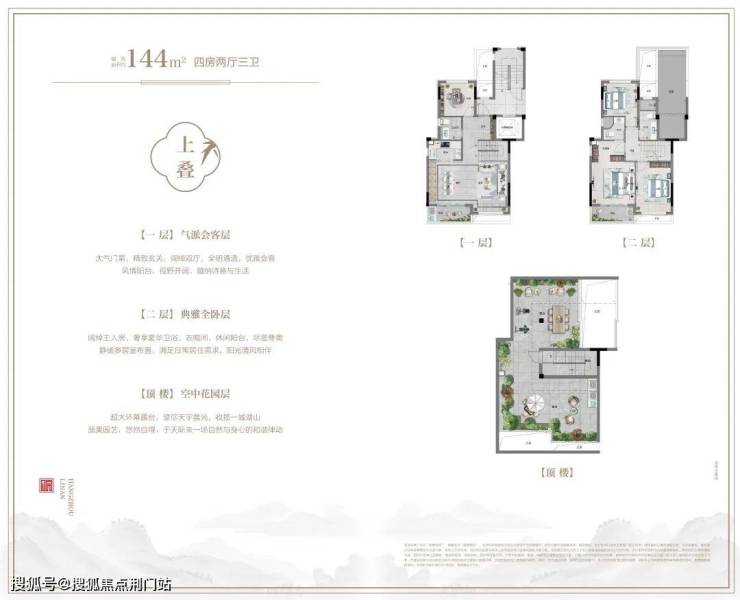 【主力户型】伴山叠院建筑面积约144㎡、城市合院建筑面积约187—195㎡