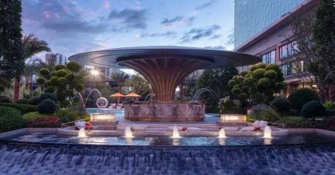 中央水景实图:景观灵感源自著名珠宝品牌CHAUMET,以“繁花造型珠宝”为设计理念,将大胆、华丽、创新于景观之中,形成特有的珠宝风格景观设计系统。
