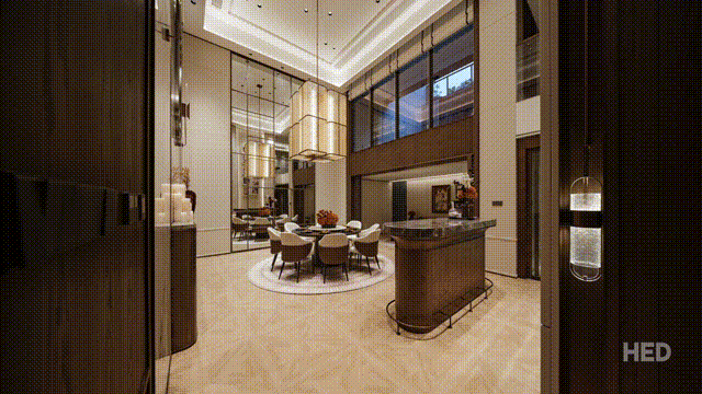 通过地下室层高的增加,下叠和中叠的地下赠送空间被放大和植入更多的活动功能可行性。同时,上叠也被赋予了地下活动空间的赠送,通过私家专属电梯实现户内动线的无缝衔接。