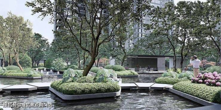 除了最能体现小区颜值的外立面,潮映望月府在景观设计上,同样独具巧思,由宋淑华大师所在的 GTS蓝颂设计操刀。