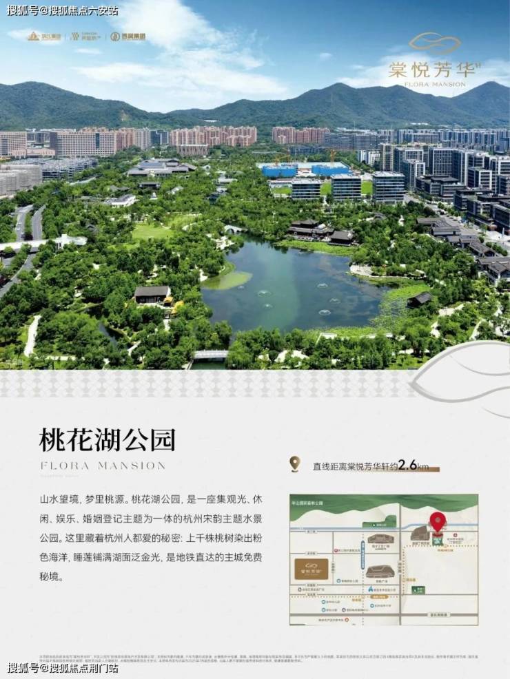 桃花湖公园为杭州城北最大的水景公园之一,占地约 300 亩,公园分南、北两个区块,南区已于 2022 年 5 月正式开园,北区于 2022 年 11 月建成。公园东南角与地铁三号线桃花湖公园站 B2 出,为周边业主提供休闲散步、遛娃的好去处。