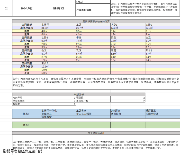 从12#南立面图来看,架空层高度5米,住宅层高3.1米,南北进深10.9米,其中阳台面积大约13.4平。