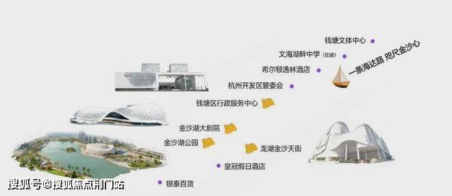 也不仅仅是金沙湖,沿着海达路驱车出行约2公里,你还能看到整个金沙湖CBD的精华:钱塘图书馆、钱塘问题中心、希尔顿酒店、金沙天街、金沙大剧院、银泰百货等都陈列在这条道上。