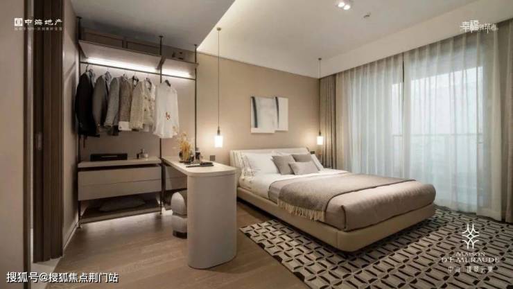 全屋约14.6米大面宽的尺度,让三个卧室都能够直面南向采光,实现阳光平权。主卧是豪华套房,除了飘窗、独卫外,由于空间够大,不论是衣帽间的梳妆打扮,临时办公等,也都能在主卧空间内实现。