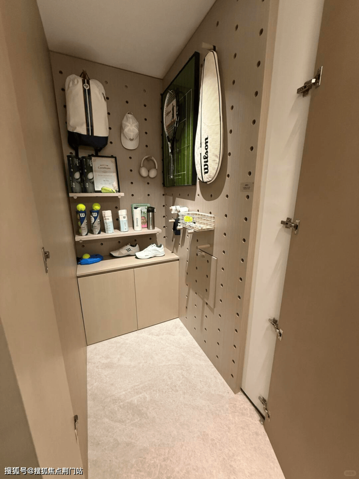 卫生间整体化岩板,一整面镜柜(内置美妆冰箱),电热毛巾架,智能马桶,旁边还有手机架&纸巾架、马桶冲洗喷头,淋浴房里壁龛、内置式顶喷、地漏阻挡条可开可合(防止堵塞)……日常生活的细节都考虑得很周全。