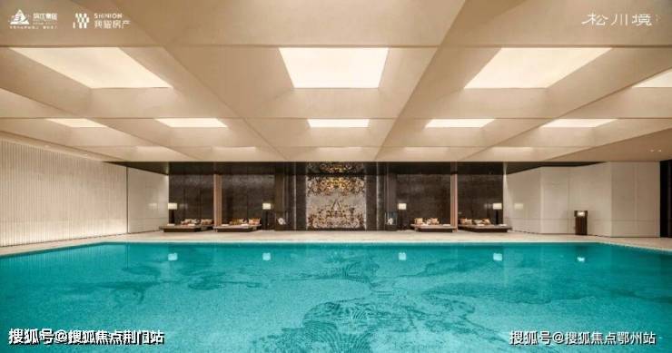 林木掩映的 「松涧天光」 恒温泳池,约30-32℃四季恒享,纵身跃入约8米x20米的碧波,亦或于池畔躺椅小憩,看天光云影共舞,在自然诗意中躺平。