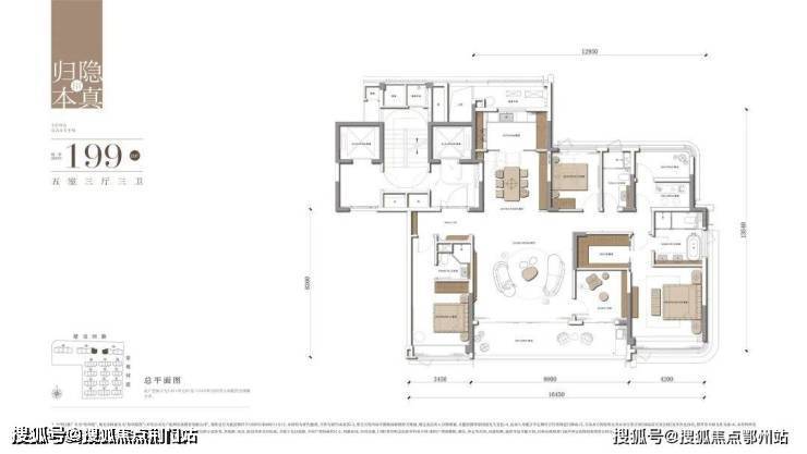 5房 灵动布局(最小的房间都有近10个平方),客餐厅近50平。还是 约16.5米南向四开间 的设计,光客厅就有约5.8米,可谓逆天。