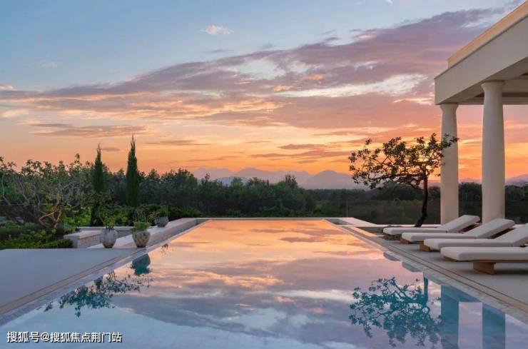 ▲柱廊、池水、群山的日与夜,绿城·溪径恒庐,杭州,实景图