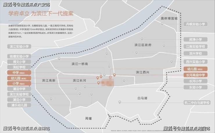 【教育配套】南面规划十五班幼儿园,项目距离步行5分钟南侧规划36个班小学(在建),项目距离步行5分钟杭州市长河高级中学,距项目约1.2公里杭州东冠小学,距项目约1.2公里杭二中白马湖学校,距项目约1.6公里硅谷中学(规划)浦沿中学,距项目约1.8公里杭州医学院滨江校区,距项目约2公里