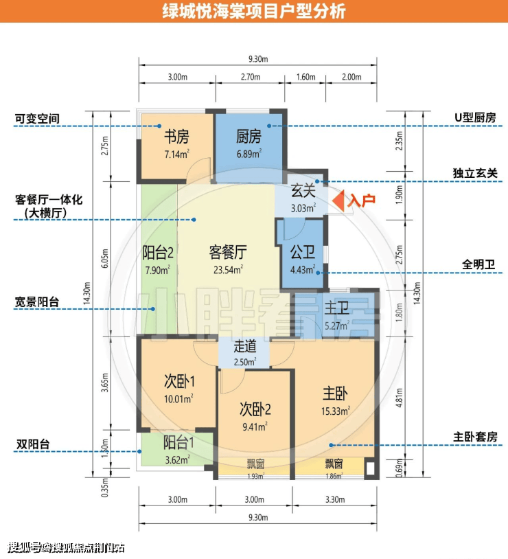房源层高约3.05米。随意测绘了一个户型的南向面宽,竟超15米。可以预见,住在这里,未来采光、通风都不错。
