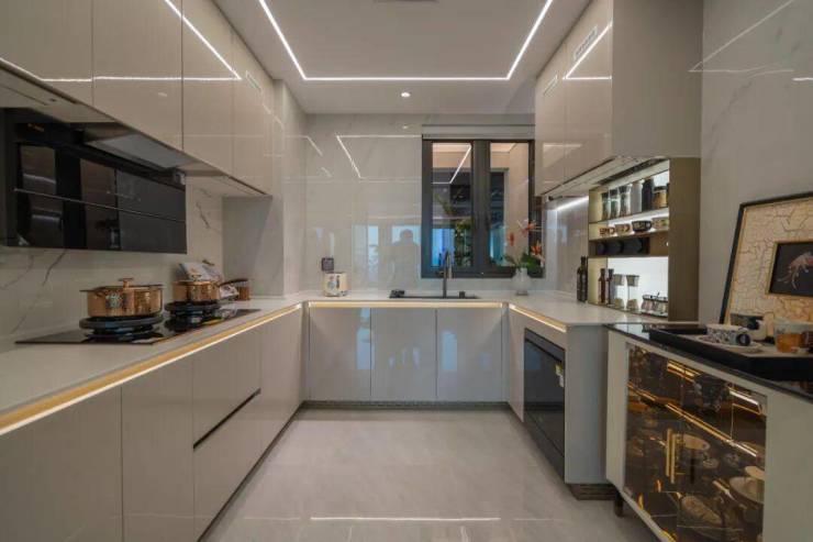 装修方面有:日立中央空调、全屋只能系统、全屋墙布等。