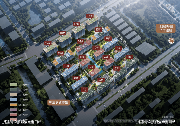 由于项目为新规后产品,户型得房率提升明显,改造后使用率高达93%以上,多数为改善大四房户型。项目预计首开推出116㎡与172㎡两个户型。