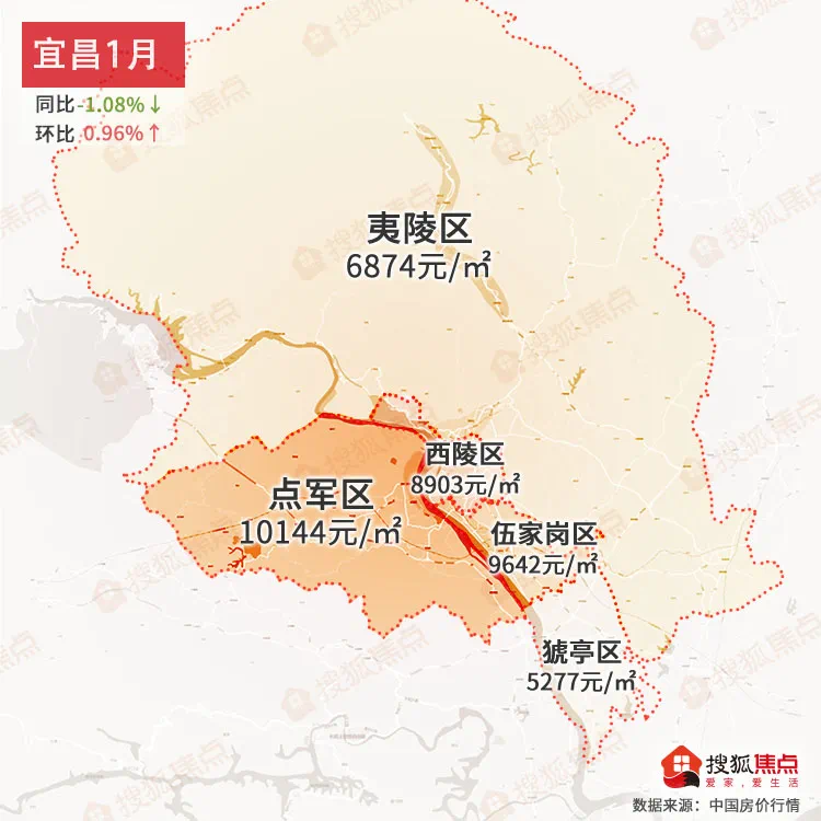 宜昌1月均价为7967元/㎡同比下跌-1.08%↓,环比上涨0.96%↑
