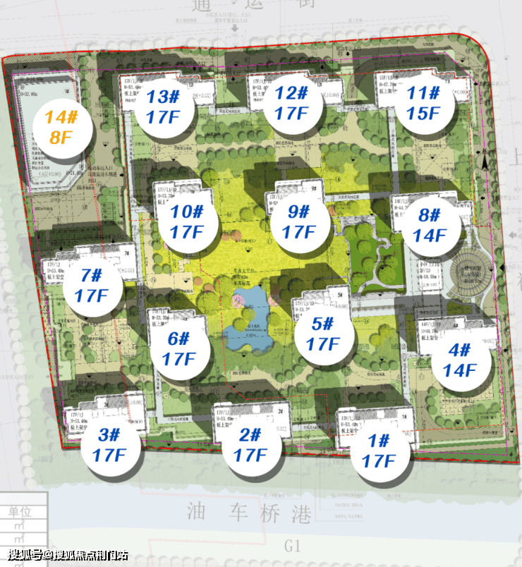 项目共规划了13幢14-17F高层,包含2幢14F、1幢15F和10幢17F,以及1幢8F公建配套。