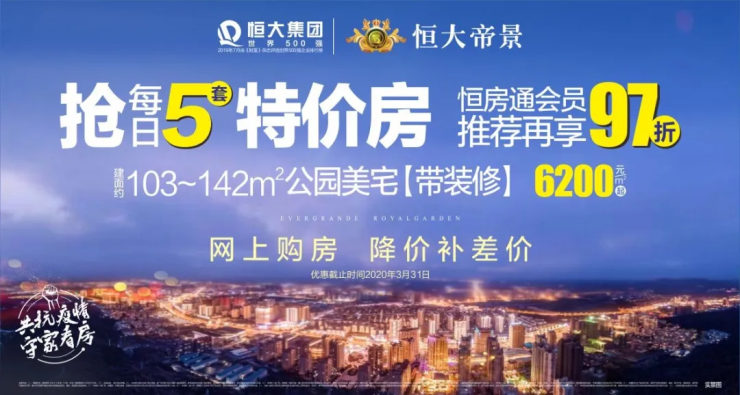 在疫情面前,他们依旧义无反顾,勇往直前。他们,就是恒大金碧物业人,让我们一起为他们点赞。目前,建筑面积约103-142㎡公园美宅【带装修】,即日起-2020年3月31日,抢每日5套特价房,恒房通会员推荐再享97折,特惠6200元/㎡起!