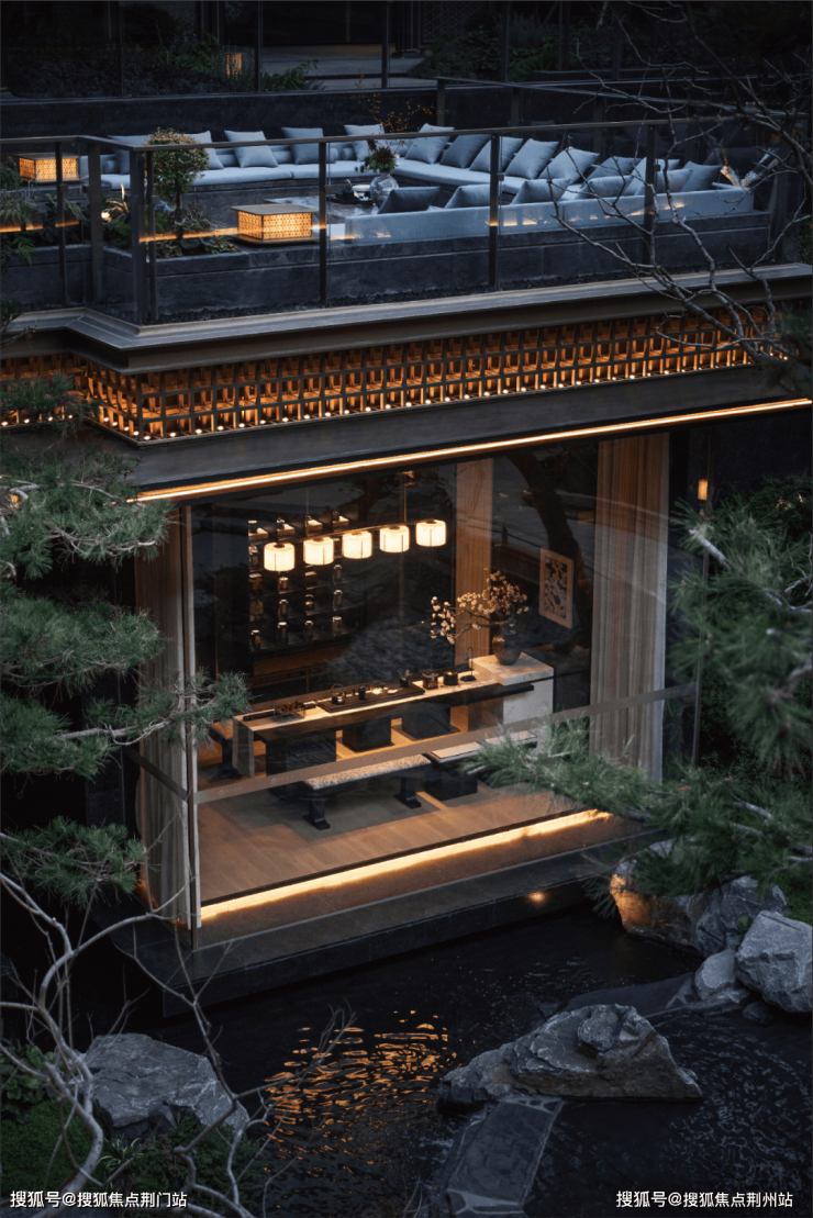 漫步于光影交织的幽静庭院,您将踏入一方充满诗意的天地。潺潺流水映照着婆娑树影,挺拔树姿为这片空间注入向上的生机,纵向延伸出无限的视觉张力。这座下沉庭院,不仅拉近了建筑与自然的情感共鸣,更使室内与景观紧密相连、和谐相融。每一扇窗户,都犹如框中的一幅生动山水画。