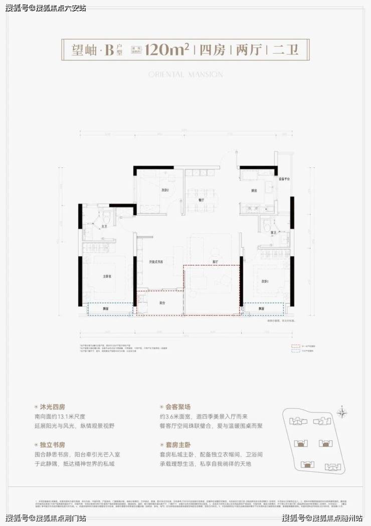 建面约120方户型: