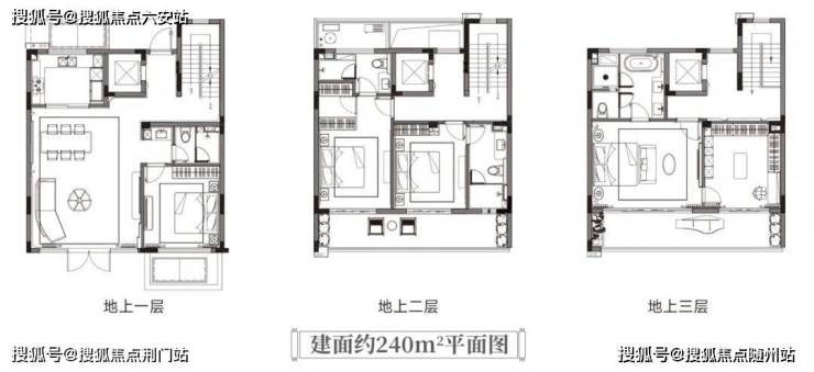 建面约310㎡边套首层南向横厅面宽约6.9米,厨房面宽约5.5米,可阔绰地分出中西厨。二层除两个超30㎡的大套间,还辟出一间家庭厅。三层完全留给主卧套,卧室区超40㎡,外接L型大露台。建面约240㎡中间套为大四房格局,二三楼都有宽约8.9米的跑道式阳台。