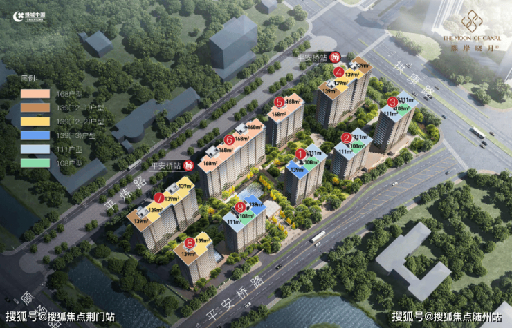 户型设计:主打108㎡、111㎡三房及139–168㎡四房,多数户型实现独立玄关、双阳台、U型厨房及主卧套房配置,得房率普遍超90%