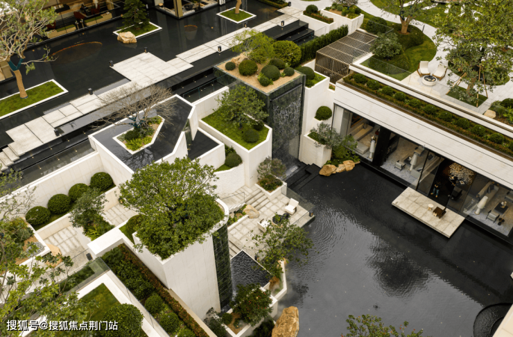 再往里走,呈现在眼前的是一个立体的、全境洄游的园林。下沉庭院、镜面水院、阳光草坪,以多维垂直的角度,诠释着风景与日常生活的深度交融。