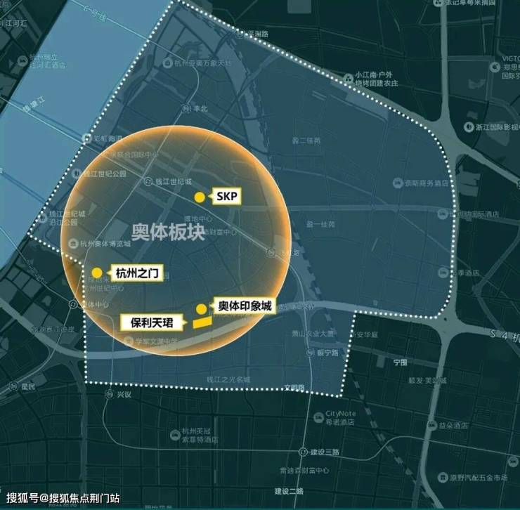 而真正的奥体核心区,其四至范围是:钱江三桥延伸至机场高速、市心北路到庆春隧道、平澜路所为围合的区域。
