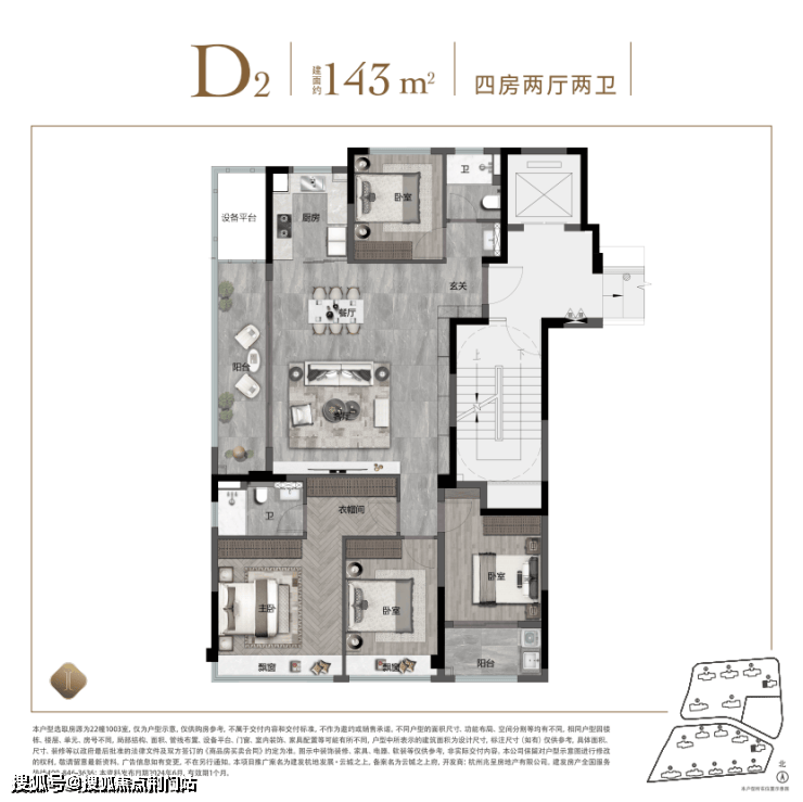 再来看看建发·云城之上建面约143㎡的四房户型。