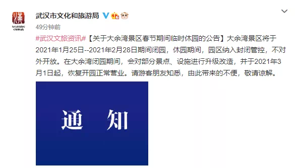 受冬季疫情等因素影响,多地景区发布通知:暂停开放。