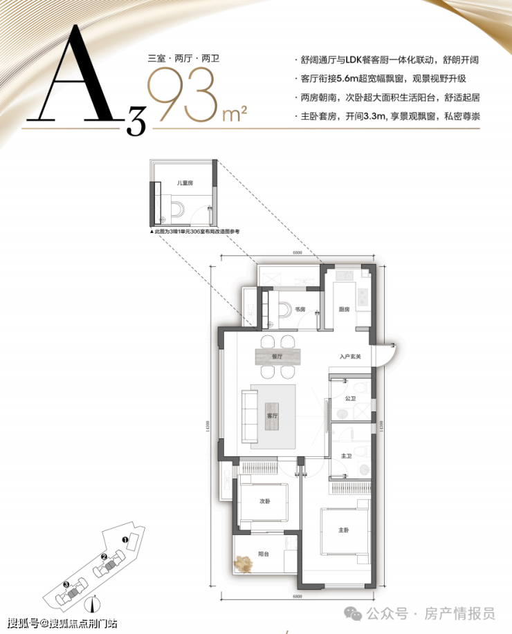 该户型定位 90 后三口之家,整个空间以简洁静谧作为主基调。