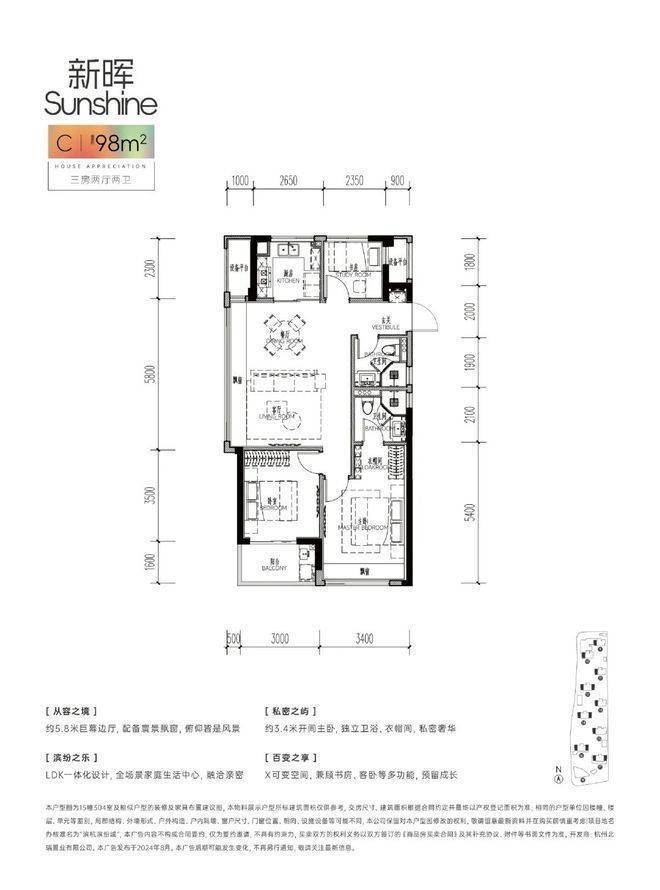 于项目,功能性只是基础,建面约98方稀缺边套三房两卫,社交力UP。