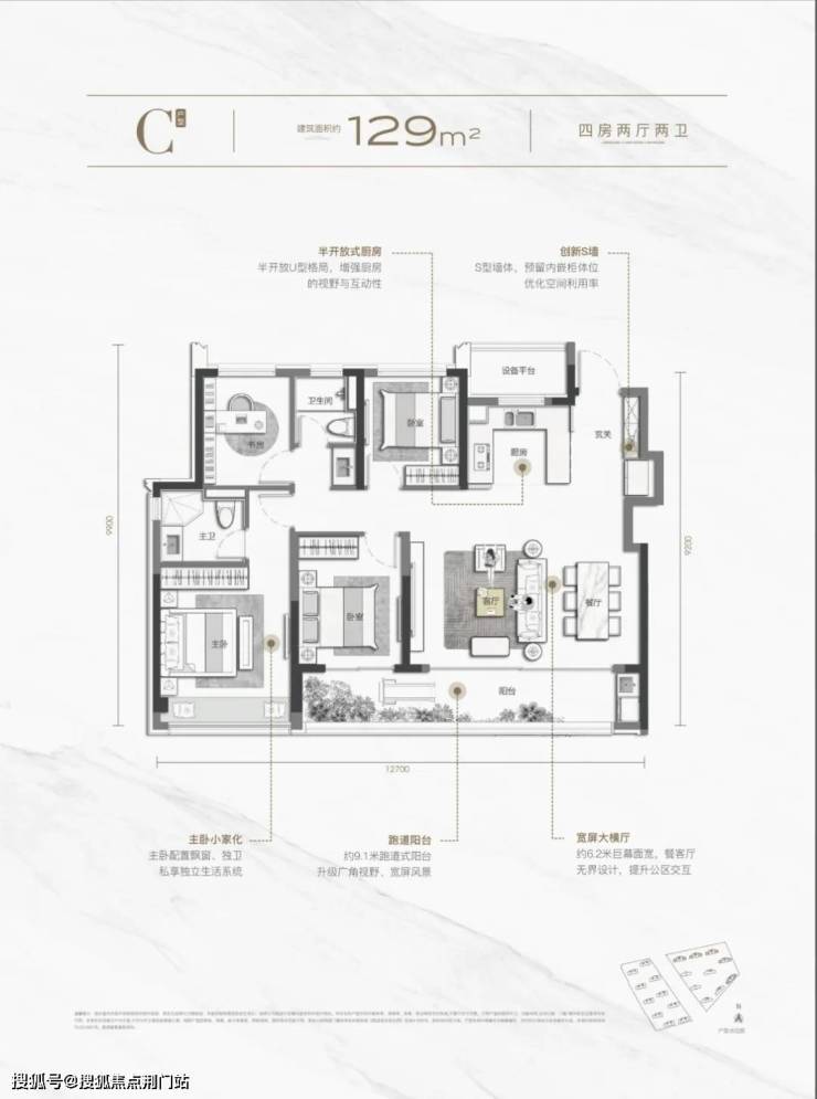 LDKB一体化设计,无界家庭公区;双阳台+270°环幕边厅,采光可谓惊艳;S墙创新设计,实现内嵌式收纳;半开放式厨房,可开合移门+互动岛台,中西厨随意切换。