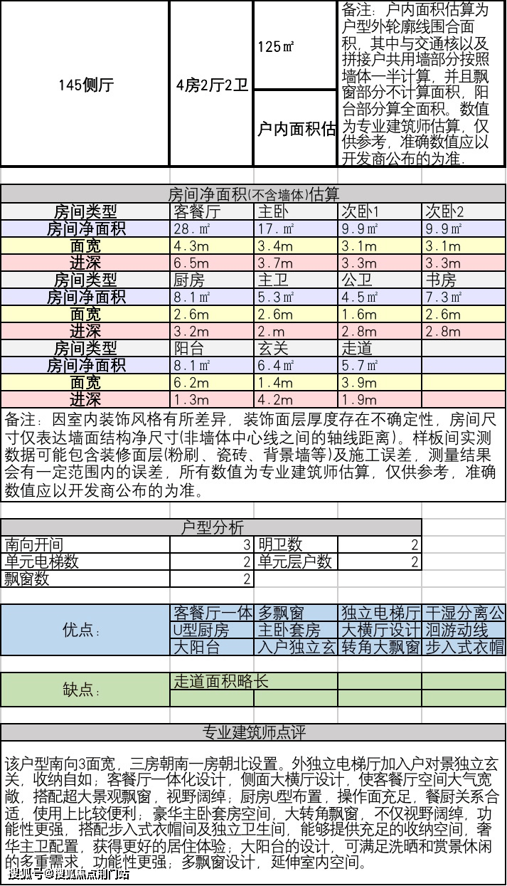2.建面约145方4房2厅2卫: