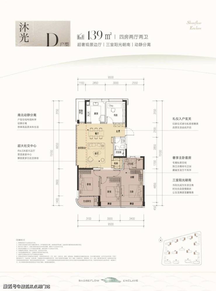 建面约139㎡D四室两厅两卫户型: