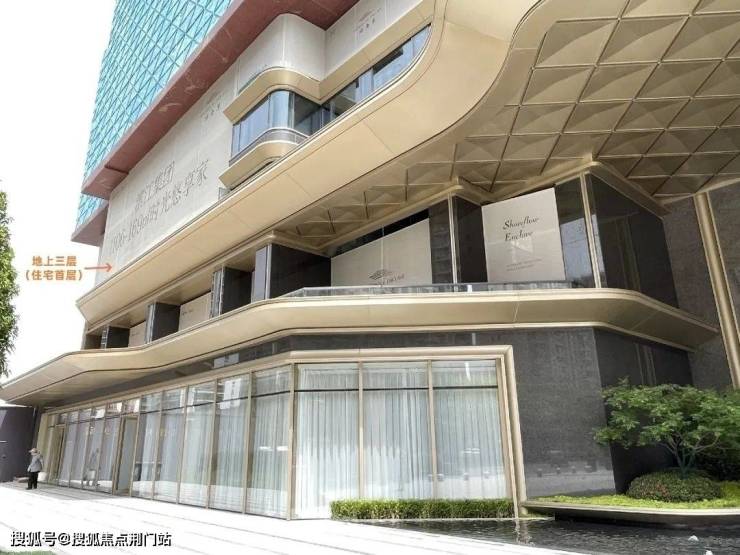 【公建立面】:首层石材,大面积落地玻璃搭配铝板线条