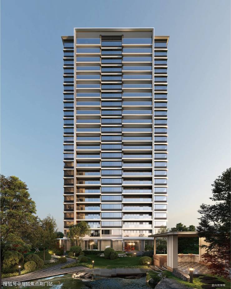【项目配置】:约1400方都会泳池会所、约4500方中央景观、约60米板块第一潮涌门庭、香槟金铝板线条立面