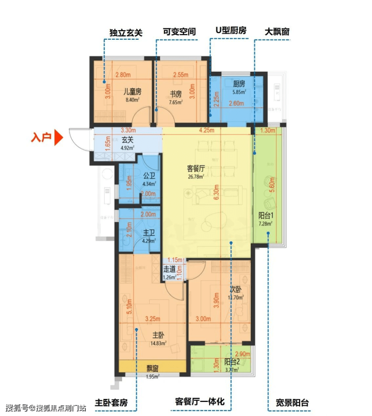 相比于115方户型,改善了阳台较小的问题,且各个功能间的尺寸也更加阔绰,更加满足二胎家庭、三代同堂等多种人群居住的需求,一步到位,免去后期置换烦恼。