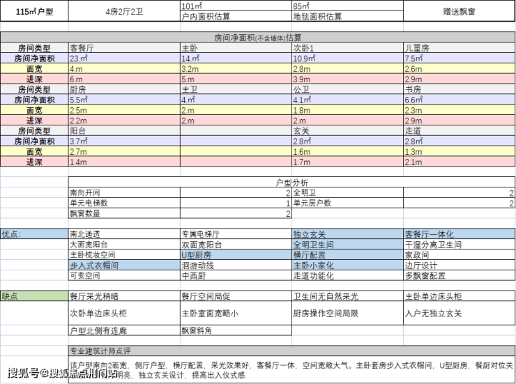 建面约115方户型: