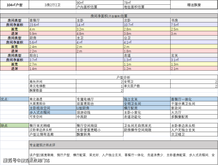 建面约104方户型: